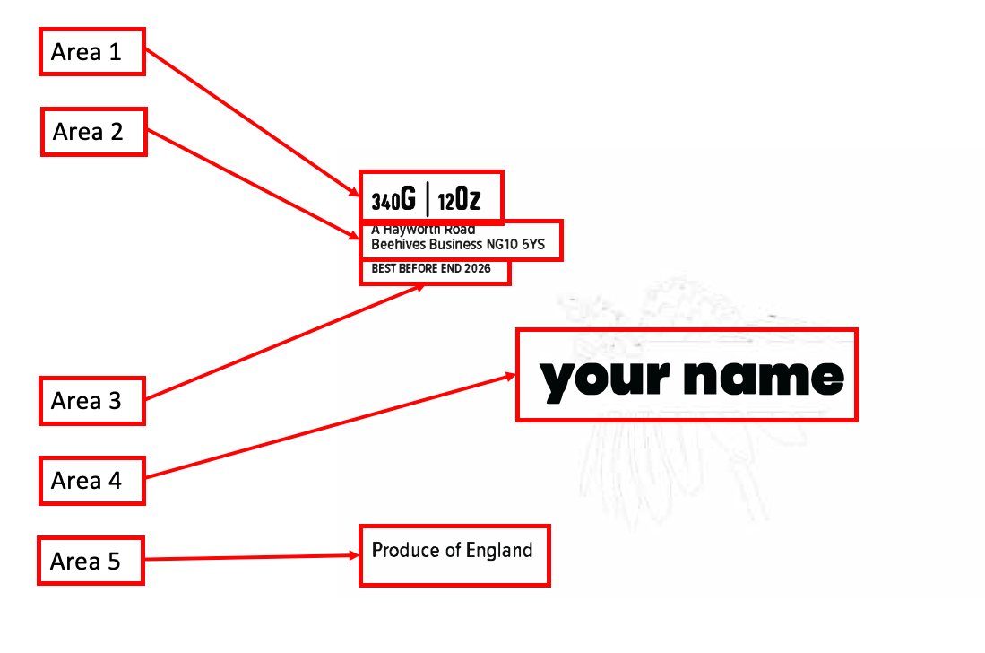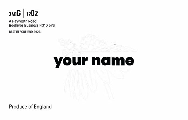 Each clear label includes up to five editable sections, carefully laid out to remain highly legible without obscuring the honey: