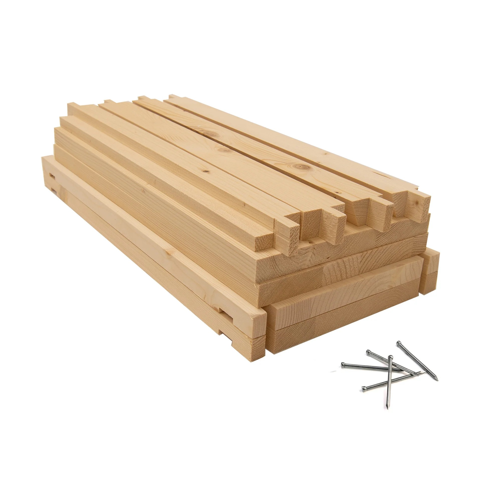 We recommend treating the hive with an insect-friendly wood preserver and allowing it to weather outdoors for one week before adding bees. For the best longevity, re-treat the wood every 3–4 years. All joints should be glued during assembly (glue not included).