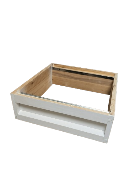 The hive features a smooth white paint coating, ideal for immediate use or as a ready-made undercoat for your preferred topcoat. The roof and floor arrive fully assembled, while the supers and brood box come flat-packed with all nails and full assembly instructions.