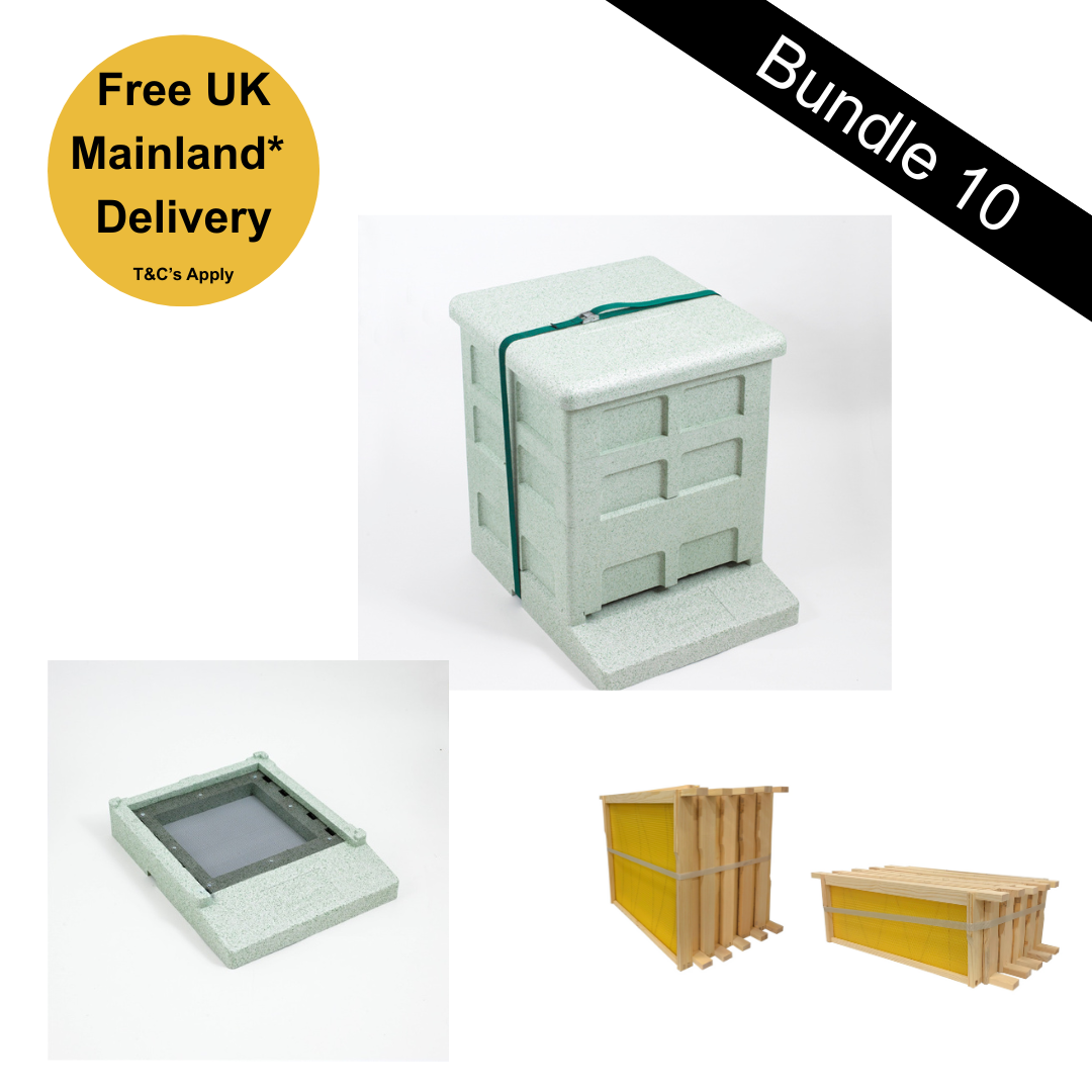 Each hive component is made from a very high density material, 120g/litre - up to 4 times stronger than the poly used for packaging. This gives the hives great durability, able to withstand hive tools and the usual beehive inspections. It's lightweight properties will mean it is easier to handle too - great for those bad backs!